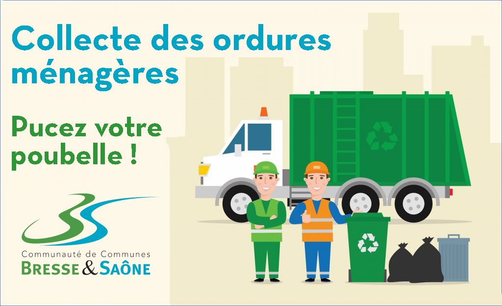 Votre bac doit obligatoirement être pucé. À défaut, il ne sera pas collecté. Afin de vous mettre en conformité si vous ne l’êtes pas, nous vous remercions d’apposer un papier dans une enveloppe (scotchée sur le couvercle de votre bac) en renseignant vos noms, prénoms et adresse. Les agents de collecte se chargeront d’installer la puce.
