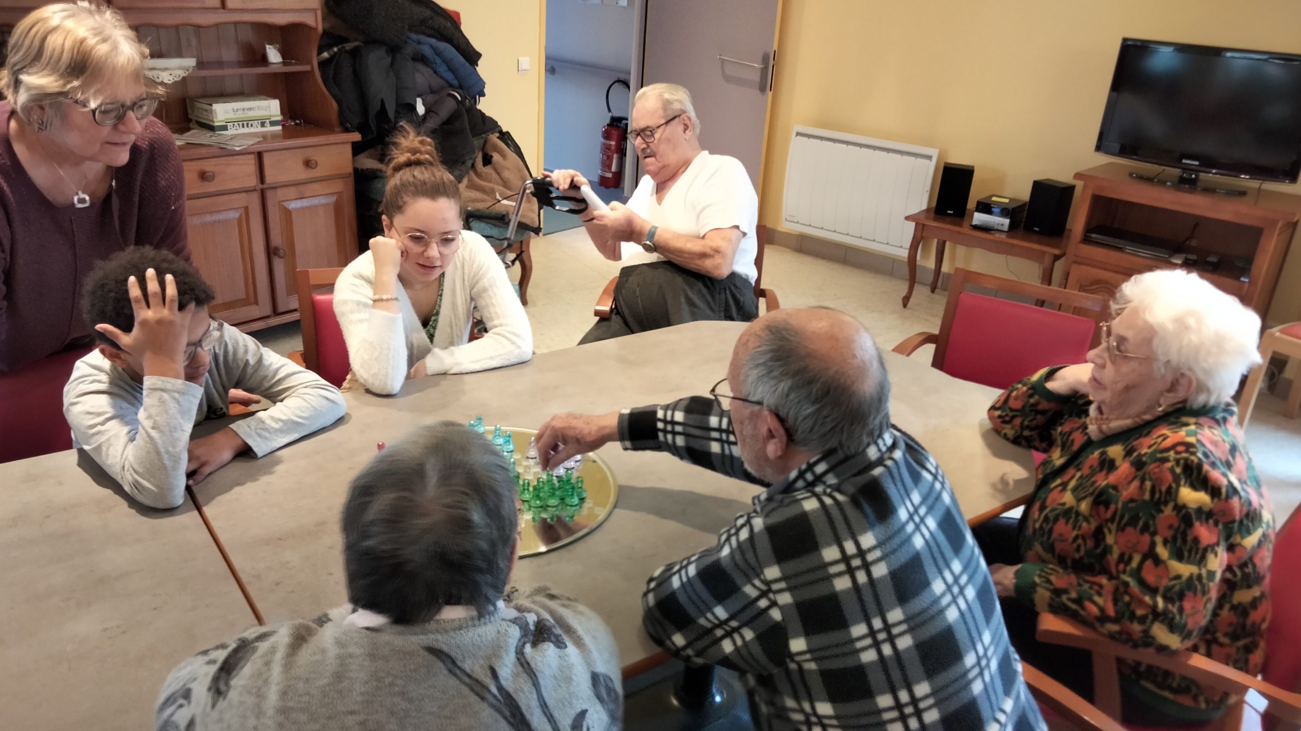 Huit jeunes enfants de 3 à 13 ans se sont rendus à la MARPA de Dommartin pour passer une matinée autour du jeu avec les résidents.