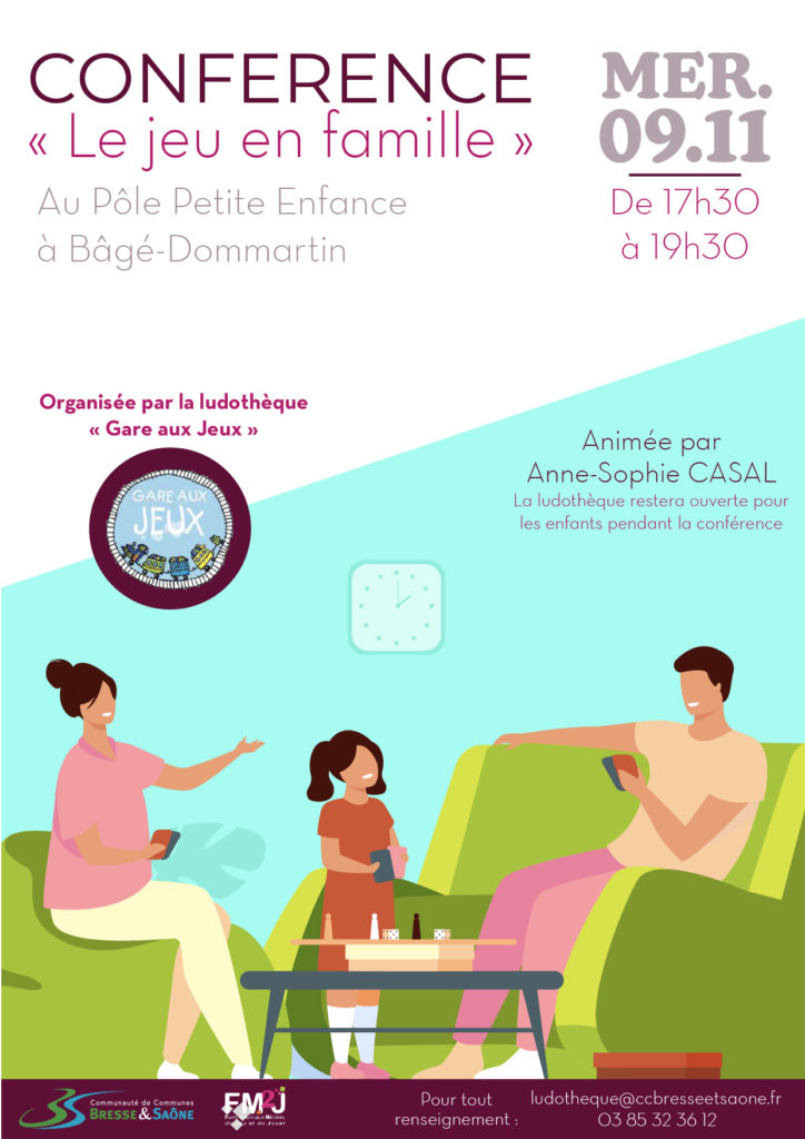 La ludothèque « Gare aux Jeux », qui a ses locaux au sein du Pôle Petite Enfance de Bâgé-Dommartin, organise une conférence pour les parents de jeunes enfants sur le thème du jeu en famille !