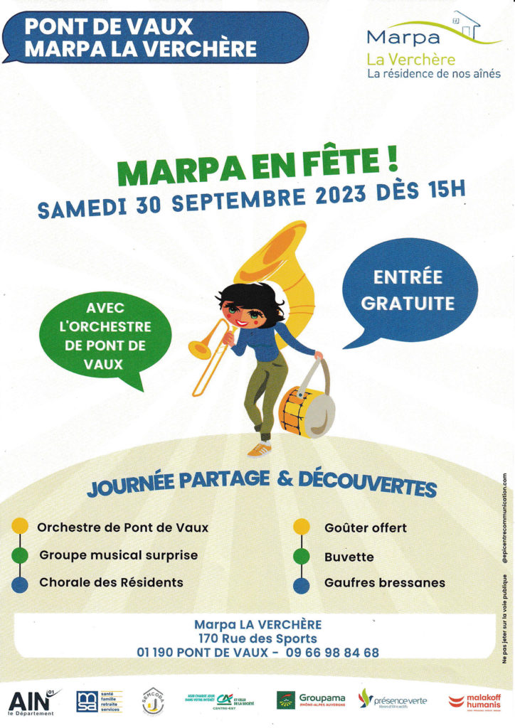 Accueil>Journée partage et découvertes Journée partage et découvertes 30 Sep 2023. Venez partager des bons moments avec nos aînés à la Marpa La Verchère de Pont-de-Vaux le samedi 30 septembre dès 15h ! De multiples activités vous sont proposées. studioatypical peacefairapp apii spbo graduationtees jabalpurmanagementassociation Hautde page