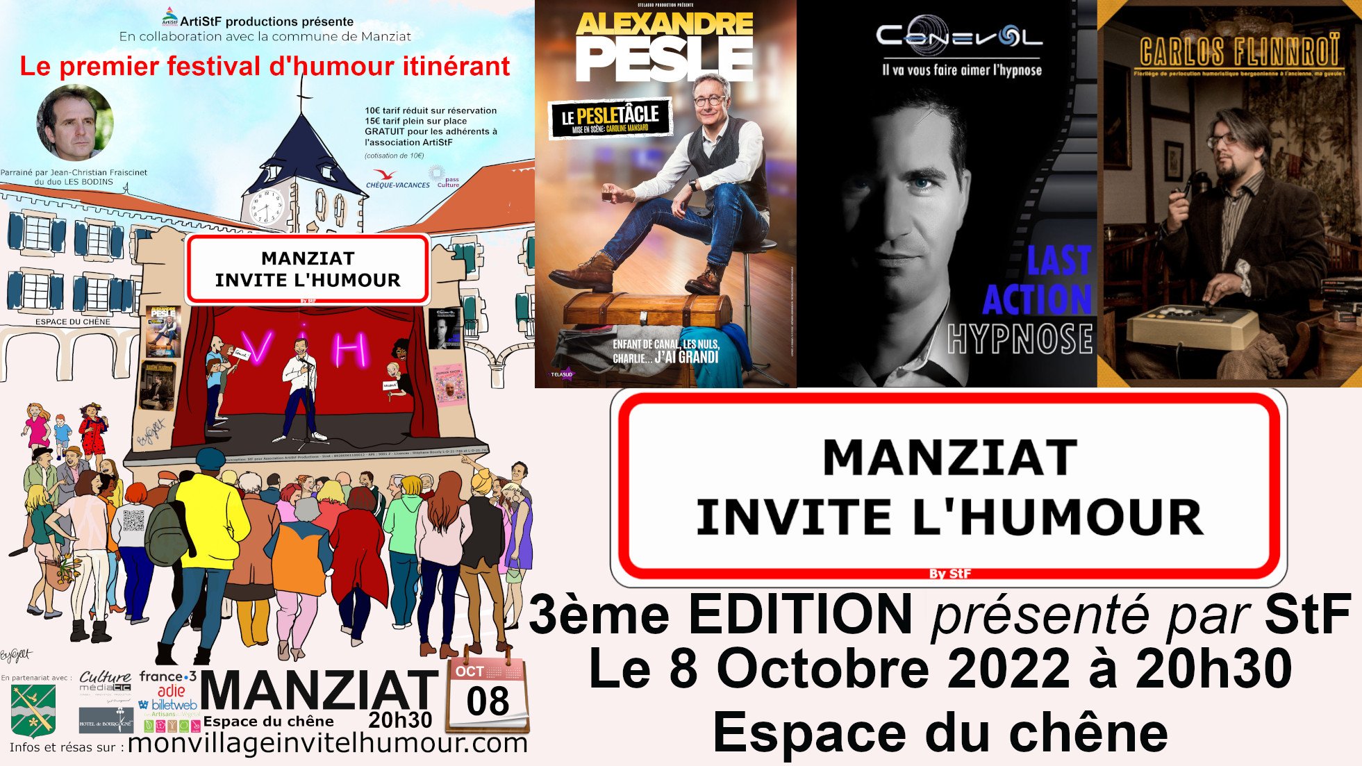 La commune de Manziat reçoit « Mon village invite l’humour » qui est le premier festival d’humour itinérant en France.
