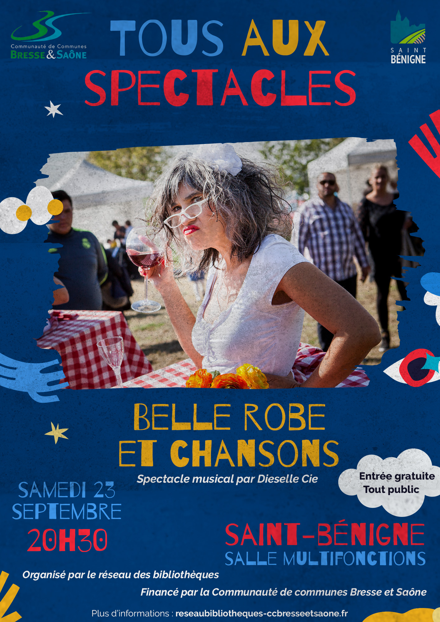 La bibliothèque de Saint-Bénigne reçoit la Dieselle Compagnie dans la salle multifonctions qui jouera son spectacle musical « Belle robe et chansons » le samedi 23 septembre à 20h30.