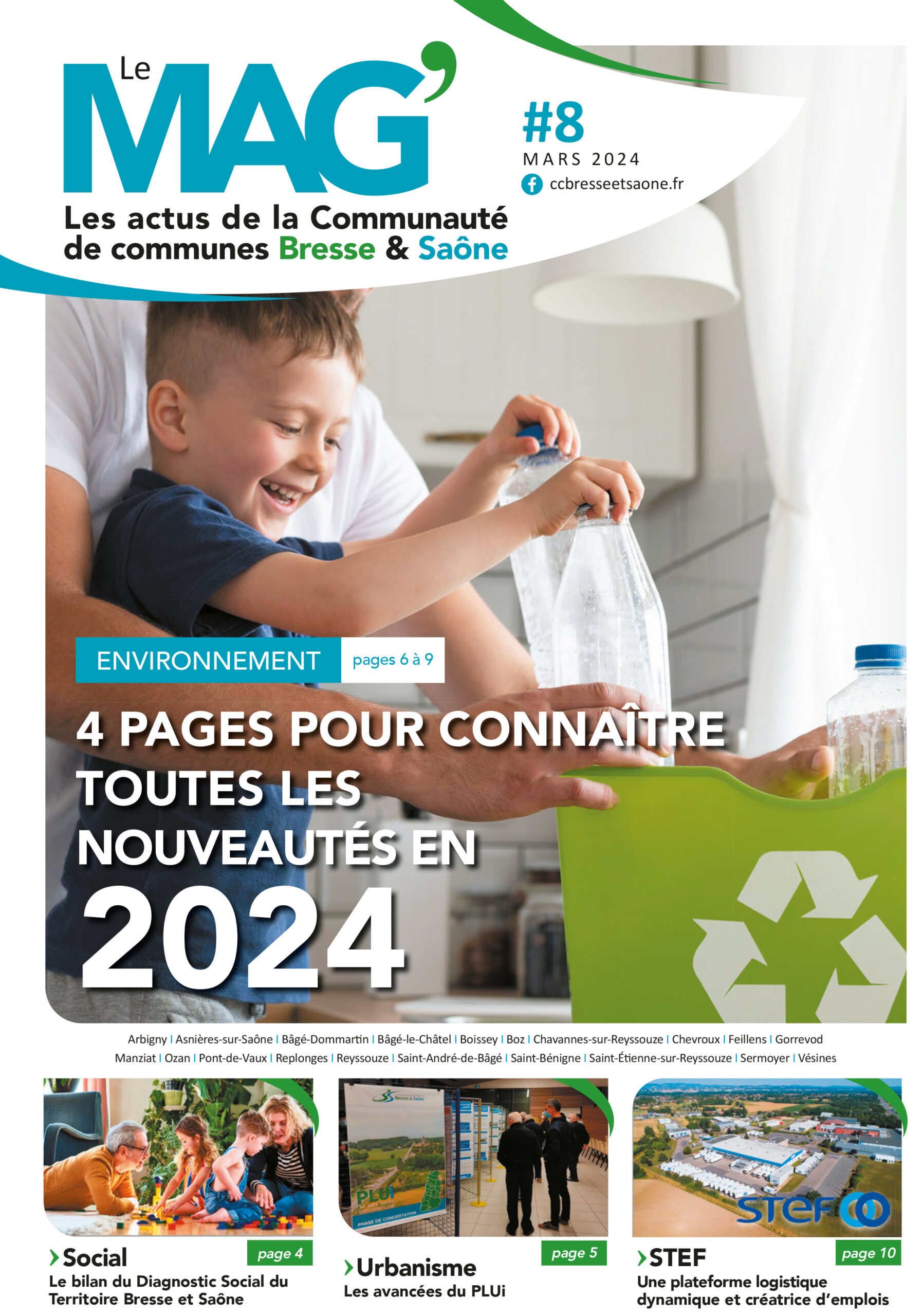 Retrouvez les actus de la Communauté de communes Bresse et Saône avec la sortie du Mag’ #8 de mars 2024 !