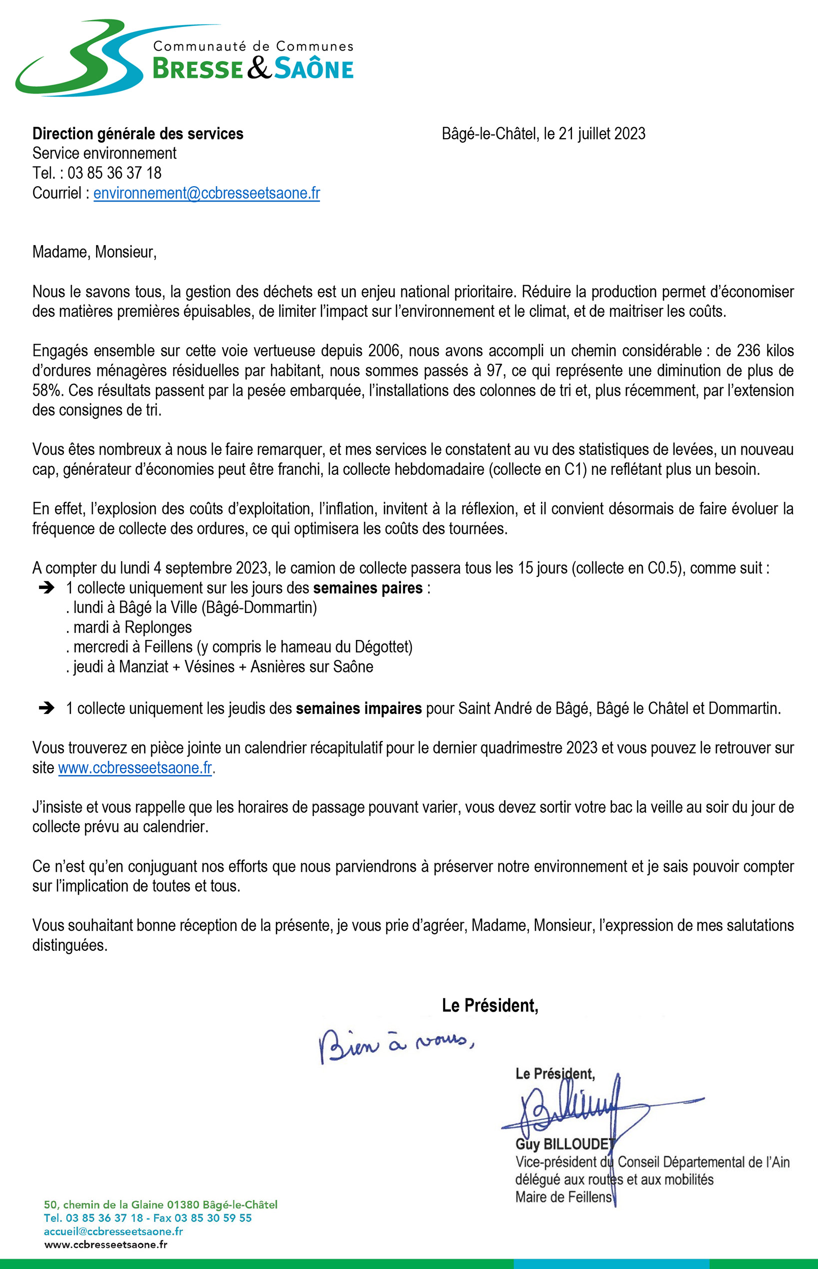 La collecte des déchets ménagers est assurée par le prestataire EGT Environnement depuis le 1er janvier 2023.