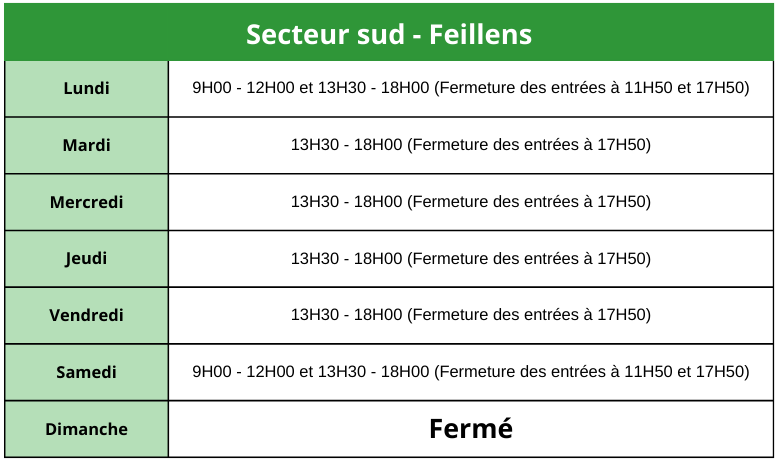 • L’accès pour celle de Feillens se limite aux habitants du secteur Sud.