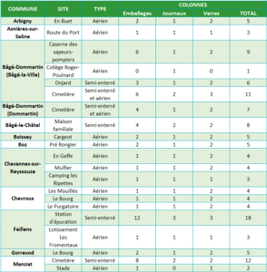 Sur le territoire de la Communauté de communes, il existe 44 points d’apport volontaire :