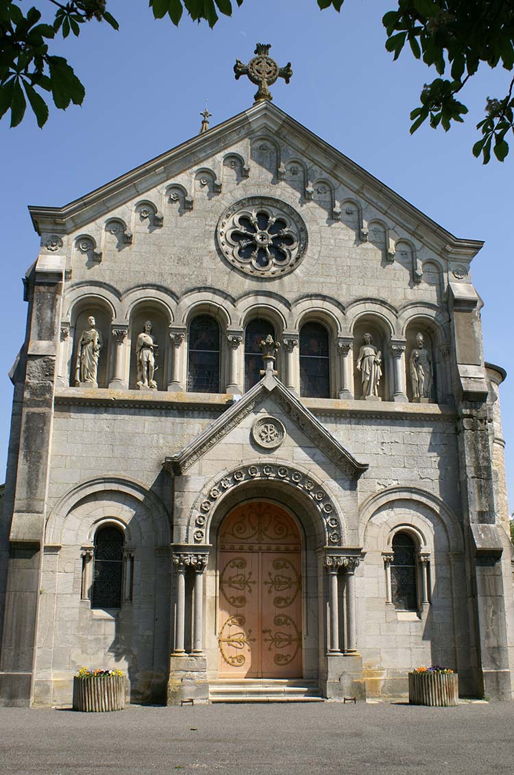 L’ancienne église romane a été détruite pour faire place à l’édifice actuel aménagé grâce à la générosité de Michel POISAT en 1864. Des dalles funéraires dressées au sud du chevet, rappellent la présence de propriétaires de fiefs, comme DUPONT de MONTPLAISANT, Comte de Loriol, seigneur des lieux de Leal.
