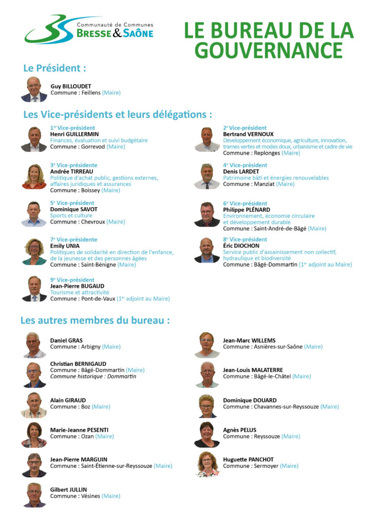 Le Bureau communautaire se compose du Président, des 9 Vice-présidents et des Maires des communes du territoire. Le Conseil communautaire est certes le seul organe décideur, mais ce sont les Commissions de travail qui assurent la gestion des dossiers.