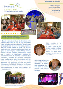 Retrouvez chaque mois l’actualité de la MARPA de la Verchère à Pont-de-Vaux au travers de la newsletter. Celle-ci datant de juin 2025 :