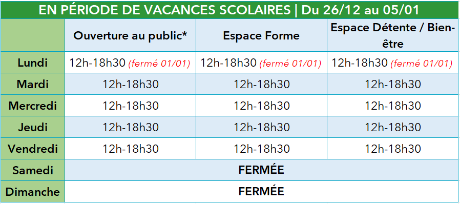 Horaires d’ouverture – Vacances de Noël 2025 :
