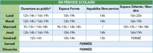 Horaires d’ouverture